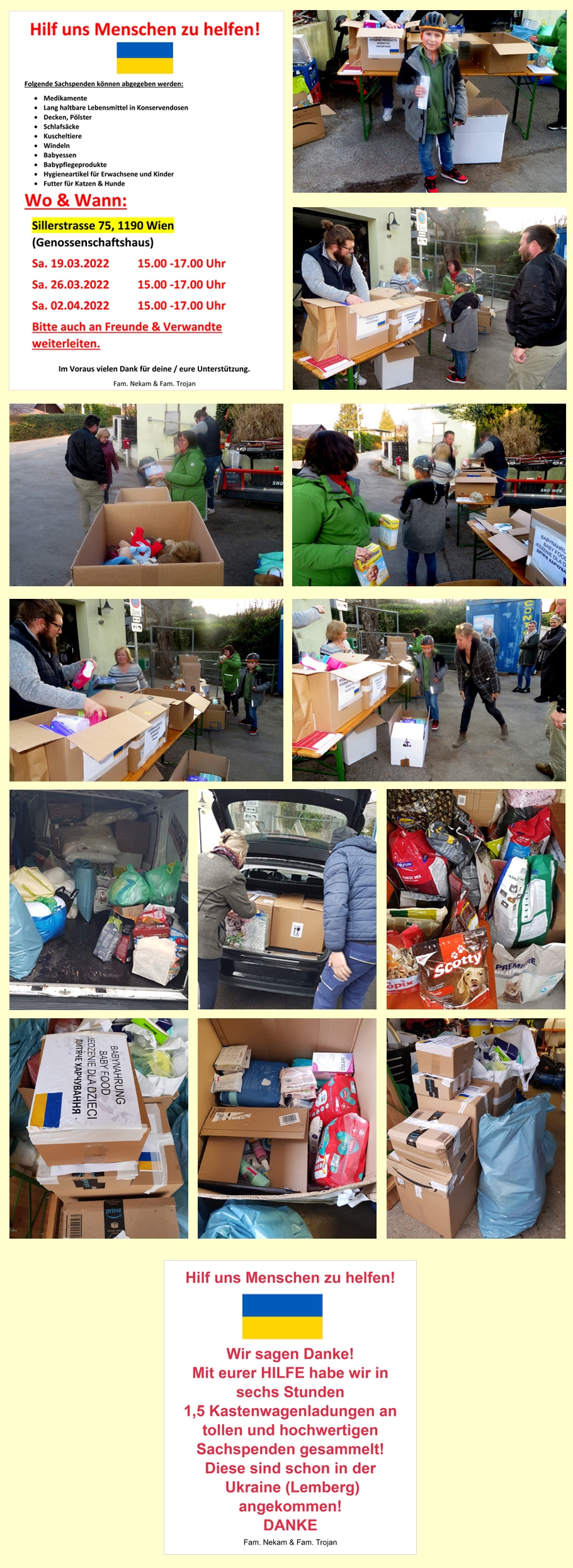 Hier in unserer kleinen Gemeinschaft haben es zwei Familien in die Hand genommen, eine Möglichkeit zu finden, um den vielen Flüchtlingen aus der Ukraine rasch Hilfe zukommen zu lassen: